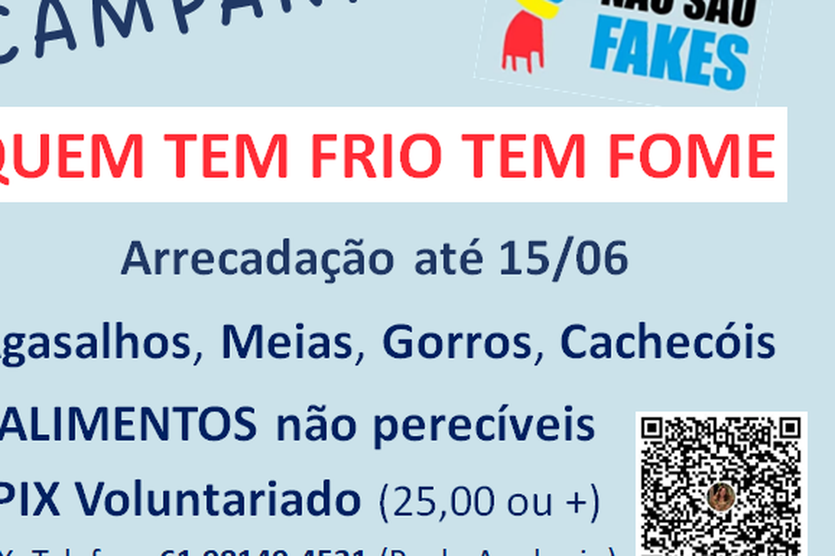 Campanha para arrecadar e distribuir alimentos, roupas e acessórios, para minimizar os impactos da foma e do frio (agasalhos, meias, gorros, cachecóis e alimentos não perecíveis).