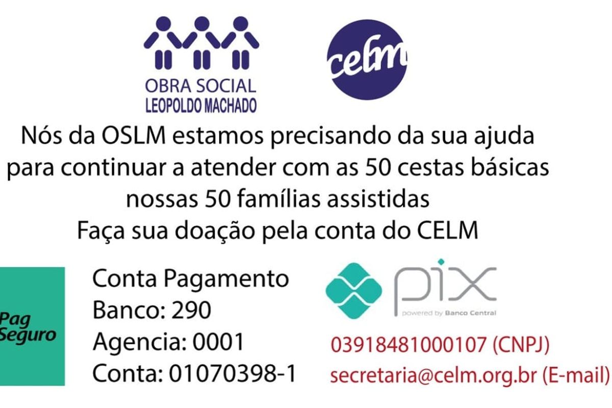 Chaves PIX: CNPJ 0391848000107 / email secretaria@celm.org.br